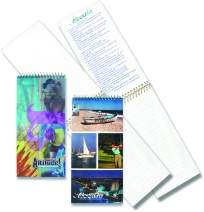 offers quality notebooks in a variety of stock sizes. All standard notebooks are constructed with a 12 point white cover.